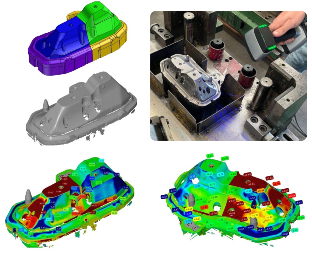 Se realizó un análisis dimensional del desgaste mediante escaneo 3D de alta resolución. A partir de la comparación contra la geometría nominal, se identificaron y cuantificaron las zonas con pérdida de material, generando información precisa para definir las correcciones por mecanizado y permitir la reutilización controlada de la matricería.