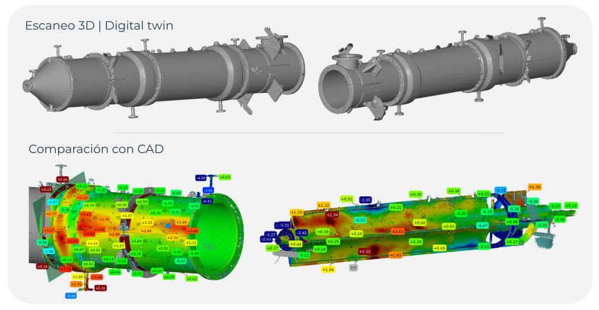 Se llevó a cabo un escaneo 3D completo del dispositivo, el cual fue comparado contra el modelo CAD original. A partir del análisis dimensional, se realizaron las correcciones necesarias basadas en datos objetivos de medición. El proceso se validó mediante reescaneos iterativos hasta alcanzar las tolerancias requeridas y asegurar resultados dimensionales satisfactorios.