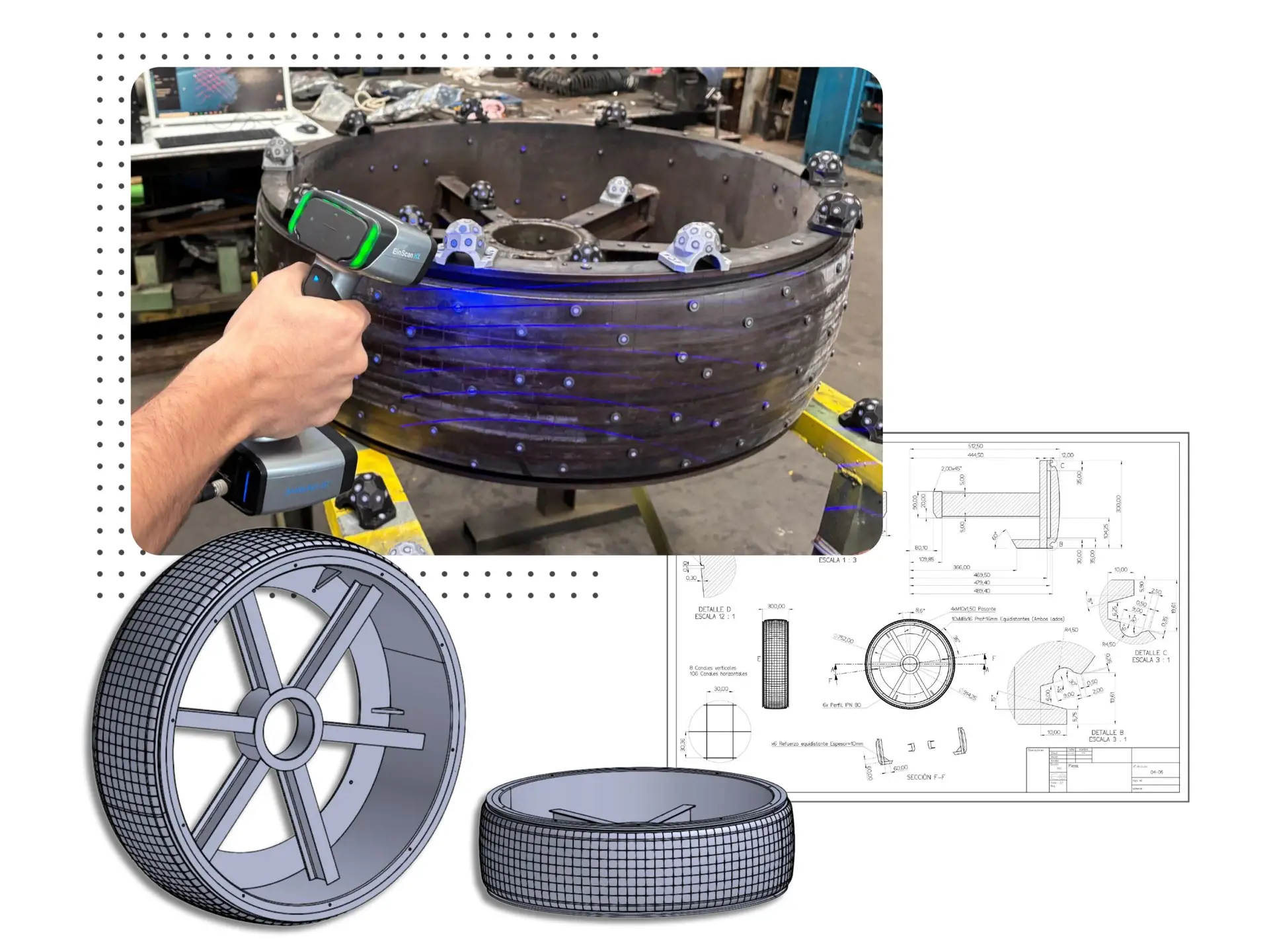 Te ayudamos a escanear, medir y reconstruir componentes industriales con rapidez y precisión.